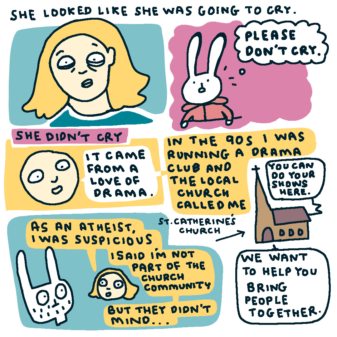 I love this post. I’ve been going into a lot of churches lately and have felt very welcomed despite being an atheist. And you are the second cartoonist to have mentioned the Zeigarnik Effect this week! Jason Chatfield was talking about it and it must be the reason my brain feels so jammed full at the moment.