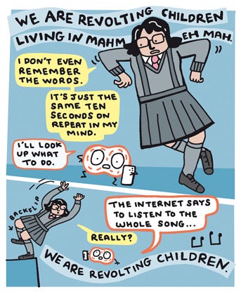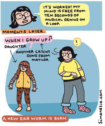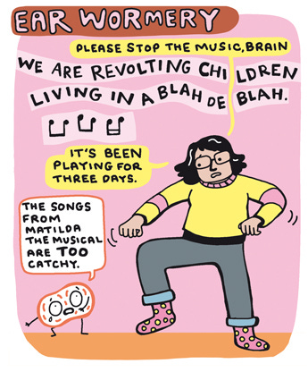 The subject for this week’s Observer cartoon is the infectious earworm that my daughter and I have been passing to each other for the past several weeks.