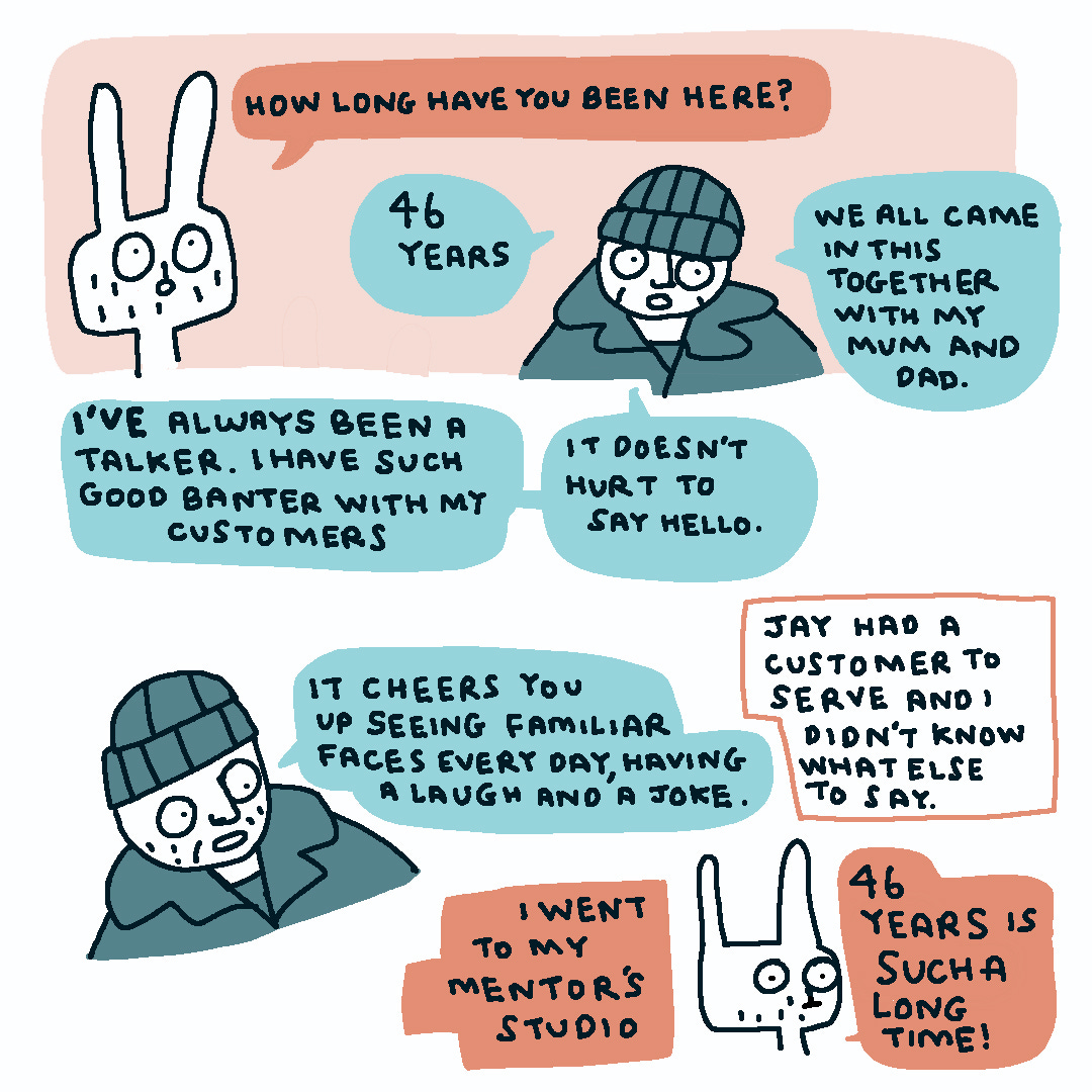 I think Fluffy is realising that once you start talking to people you quickly find out that everyone has a story of some kind and there’s something to be learned from everyone. If you haven’t seen his graphic novel that we wrote together, it is available online and in good bookshops and libraries (please do ask for it in your library).